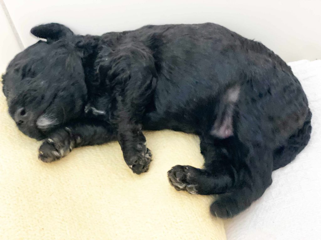 Der zweite Welpe – schwarzer Rüde mit kleinem weißem Fleck am Unterkiefer (wie bei Mama Bonnie)